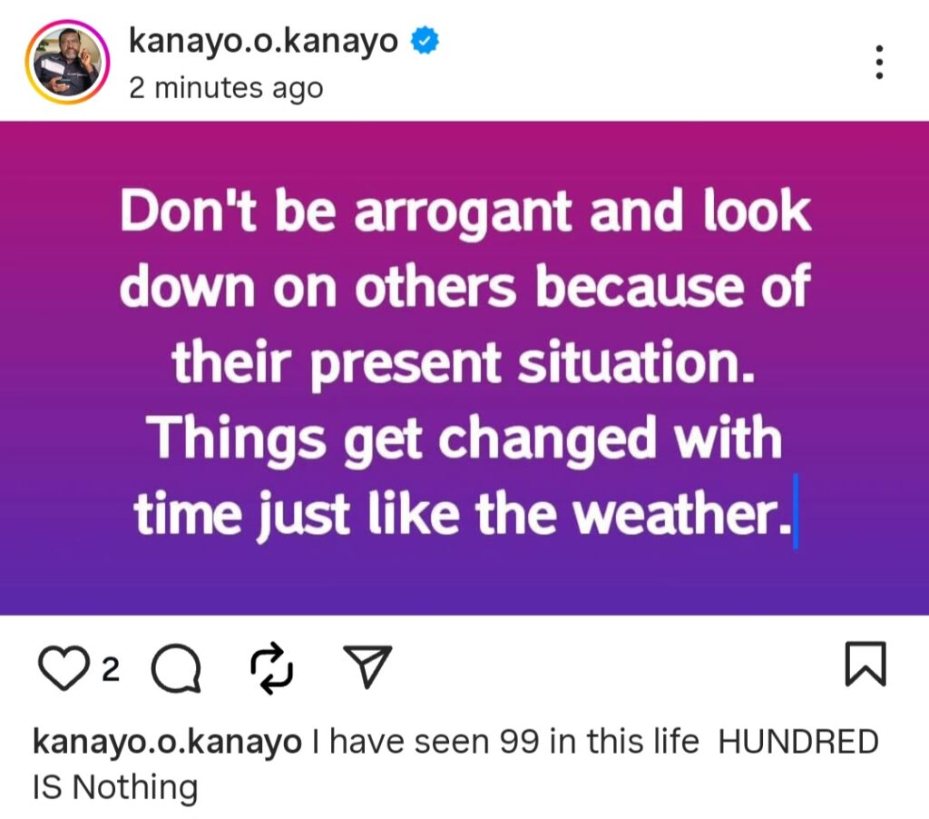 Kanayo O. Kanayo Encourages Humility, Reminds Followers That Life Can Change Quickly