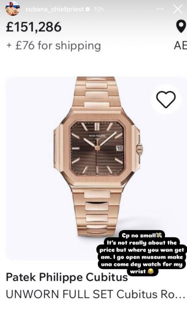 Nightlife entrepreneur Pascal Okechukwu, popularly known as Cubana Chief Priest, has stirred buzz online after flaunting his luxury timepiece worth £151,000.